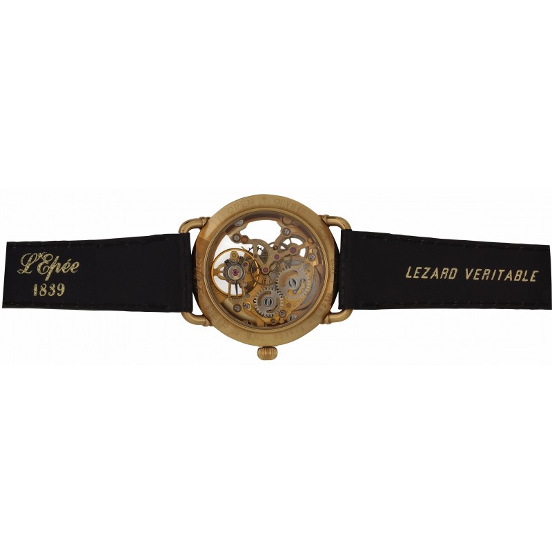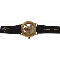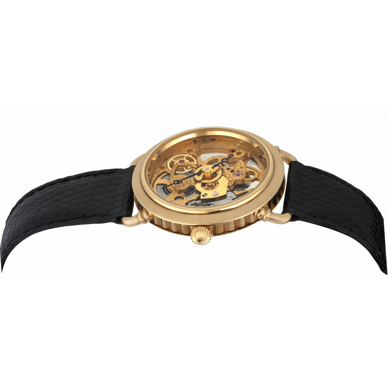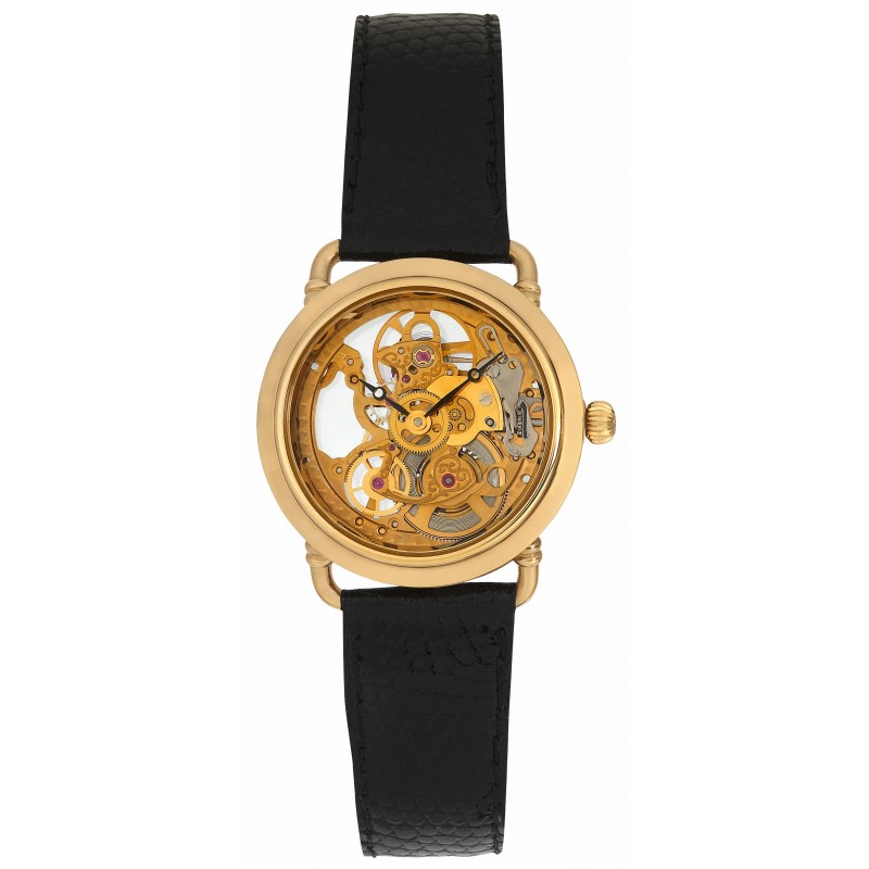 Signature wristwatch powered by a beautifully skeletonized and manually-wound movement.