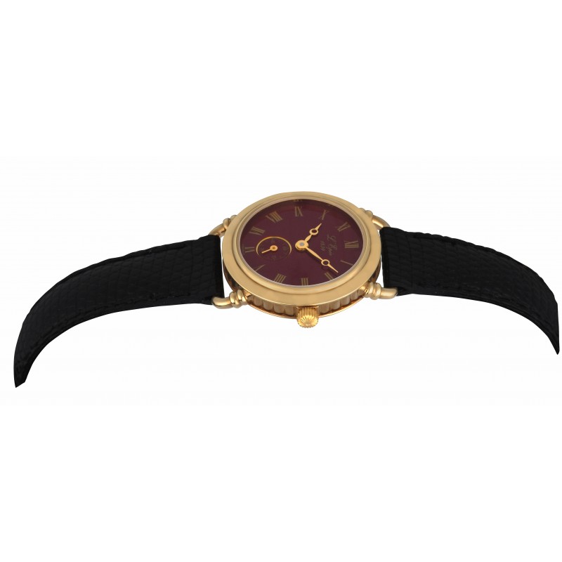 Wristwatch with "Small Seconds" and burgundy lacquered dial.