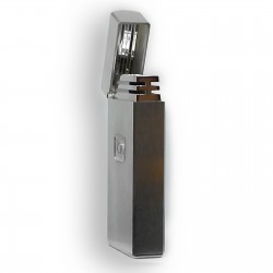 Ασημένιο μεταλλικό περίβλημα σε γεωμετρικό σχέδιο. Ηλεκτρονική ανάφλεξη. (Μοντέλο αρχές της δεκαετίας του 1970). Κατάσταση:  Καινούργιο Αχρησιμοποίητο Made in UK